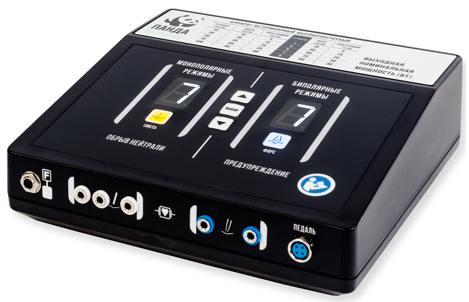 Аппарат высокочастотный ветеринарный ПАНДА-105 - универсальное решение для лечения мелких домашних животных. Достаточно мощный для оперативного лечения крупных пород собак. Это разработка 2018 года на основе популярной и хорошо зарекомендовавшей себя модели ПАНДА-100. В аппарате 105 улучшены выходные характеристики благодаря микропроцессорной обработке сигналов обратной связи по мощности. Добавлены два режима - смешанный режим резания (СМЕСЬ) и усиленной коагуляции (ФОРС).