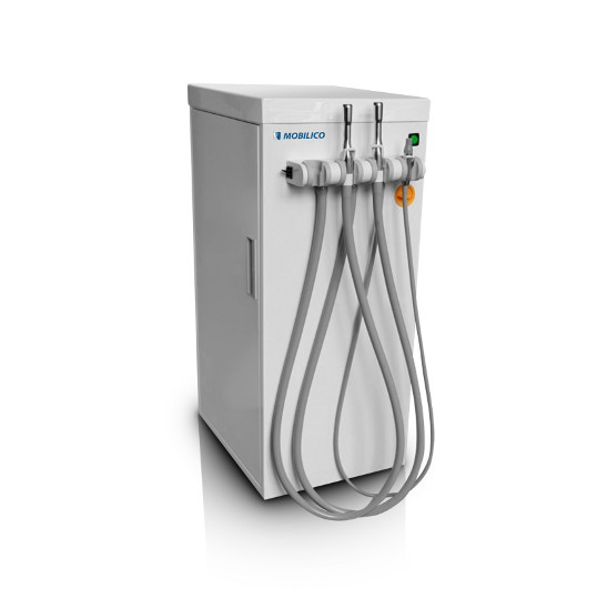 Это автономная модель помпы, которую легко и удобно можно разместить в кабинете рядом со стоматологической установкой,