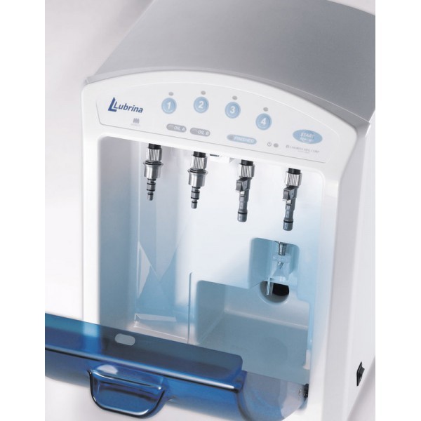 • Lubrina предназначен для обслуживания до 4-х наконечников одновременно за 100 сек, включая продувку и установку соединений. Необходима всего 1/3 количества масла-спрея по сравнению с ручной смазкой.