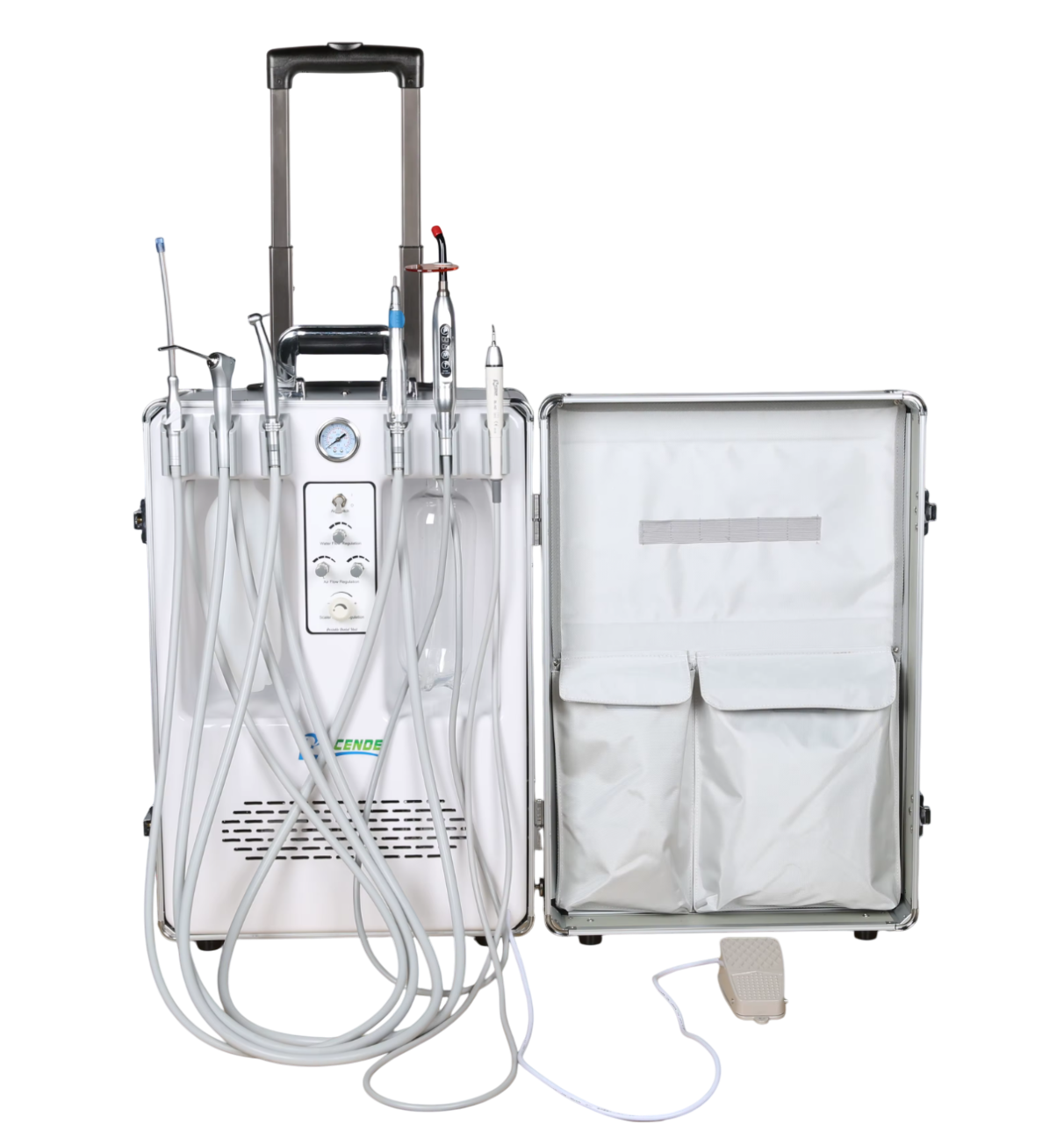 Кроме того, предусмотрен трехходовой шприц для удобства работы, слюноотсос для поддержания чистоты в ротовой полости, а также бутылки для чистой воды и отработанных материалов.