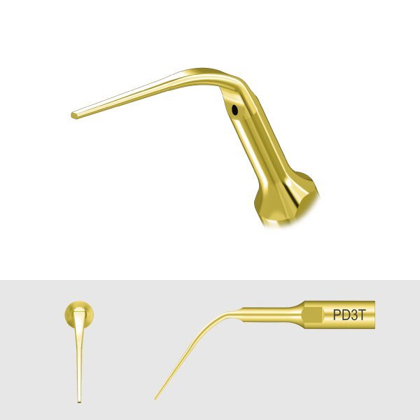 • Насадка с нитрид-титановым напылением PD3T, рекомендуется для очистки и промывания глубоких десневых карманов.