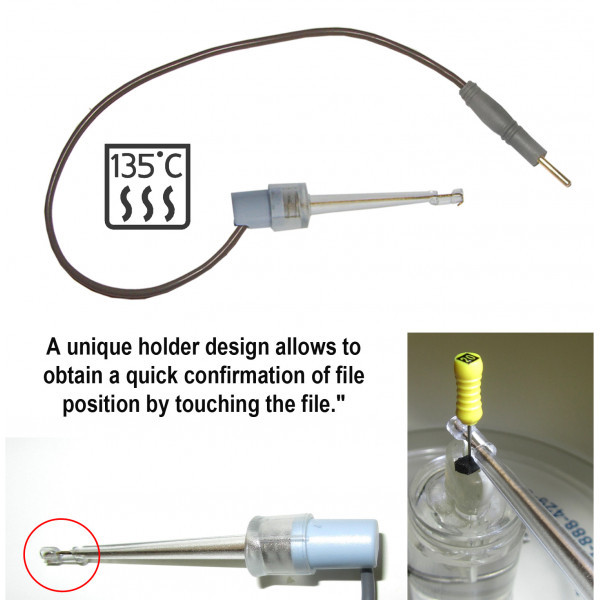 • Щуп-зажим для рабочих файлов. Используется в качестве зажима активного электрода (файла) при проведении процедур апекслокации, депофореза, электрофореза и анодной стерилизации.