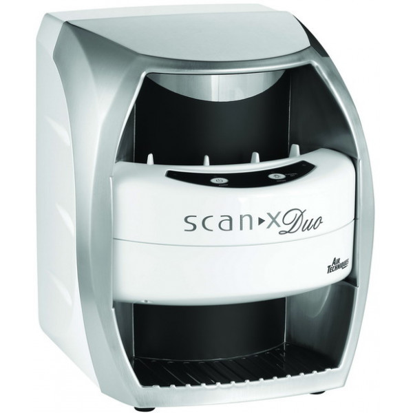 Сканеры работают с любым программным обеспечением. Сканер представляет собой гибридную систему между цифровой радиовизиографией и аналоговой. Сканер с высоким разрешением сканирует специальную электронную матрицу с помощью лазера и преобразует данные рентгеновского снимка, который сохраняется на матрице в цифровом виде, и передает оцифрованное изображение на компьютер для дальнейшей обработки. Матрица облучается рентгеновскими лучами так же как и обычная рентгеновская пленка, только с меньшей дозой облучения. Также эта матрица является многоразовой (до 5000-8000 снимков). ScanX Duo позволяет сканировать матрицы форматов 0, 1, 2, 3, 4