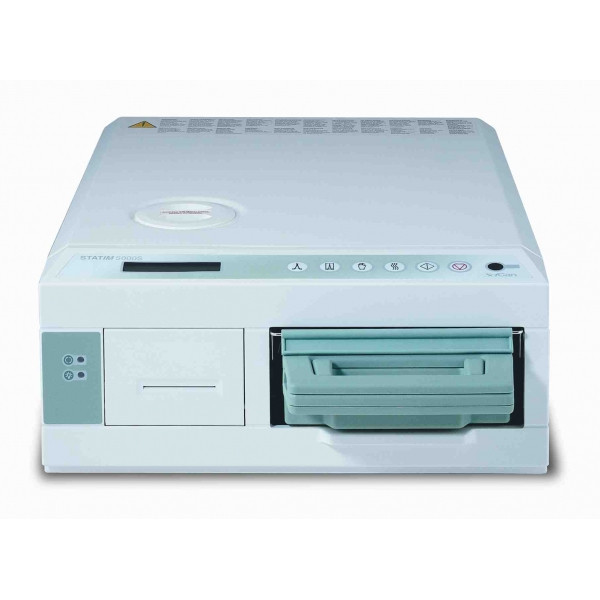 Одновременно можно стерилизовать до 10 пакетов упакованного инструмента или до 14 неупакованных наконечников. Автоклав Statim 5000 - надежный и компактный кассетный стерилизатор S класса. Будучи крупнее модели 2000, модель Statim 5000 располагает дополнительным циклом стерилизации и более вместительной кассетой, спроектированной для обработки более громоздких инструментов. Предназначен для стерилизации стоматологических наконечников, инструментов Lasik, эндоскопических и офтальмологических инструментов. Автоклав Statim 5000 позволяет стерилизовать наконечники всего лишь в течение 17,5 минут (упакованные) и 9 минут (неупакованные) в перерывах между приёмом больных, что позволяет повысить эффективность работы и обеспечивает значительную экономию рабочего времени.
