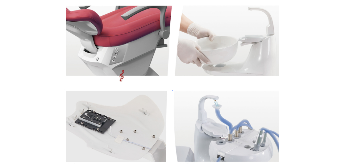 Панель управления Touch Screen всеми функциями установки, управление микромотором и скайлером непосредственно с модуля врача