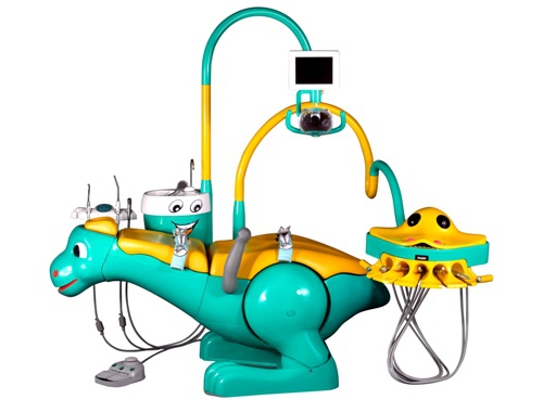 Стоматологическая установка Valencia 03 для приема пациентов дошкольного и младшего школьного возраста рассчитана на 5 инструментов (подача нижняя). Установка оснащена разноцветным, комфортным креслом, в виде сказочного персонажа. Лечение и осмотр на спине забавного динозавра проходят гораздо легче и комфортнее для психики ребенка. Такой отвлекающий маневр позволяет маленькому пациенту чувствовать себя уютнее и увереннее.