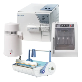 • Комплект Romax: автоклав YS22L (22 л) + дистиллятор Z500 (4 л) + запечатывающее устройство SEAL F300A + аппарат для смазки и чистки наконечников LUB-900B